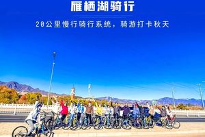 - 10:30|到达雁栖湖自行车基地,领取自行车,检查车辆及护具,统一讲解注意事项。之后在领队的带领下按指定路线骑行,我们边骑边玩,感受秋日雁栖湖风景。