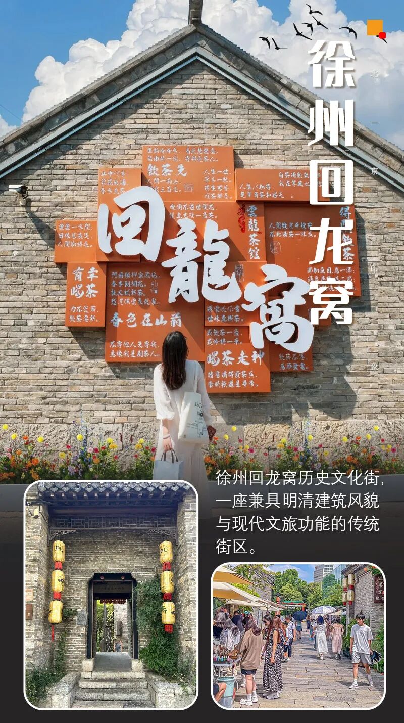 回龙窝始建于清朝,建筑格局为典型的徐州传统民居旧建筑,这里可以参观徐州城墙博物馆,了解徐州 “城下城、街下街、井下井” 的叠城奇观,还可以打卡以老徐州取水井遗迹为核心打造的 “三井”,体验民俗文化感受徐州非物质文化遗产的魅力;这里有窝里横・老味新潮徐州菜等众多特色美食;打卡特色店铺:猫的天空之城等特色文创店,非常适合拍照。