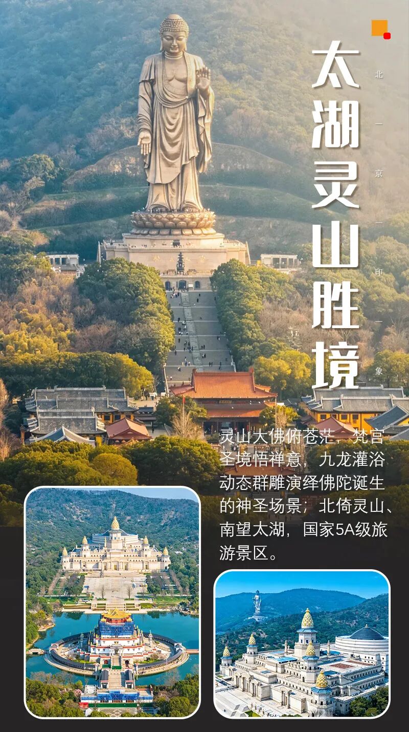 灵山胜境:88米高灵山大佛,九龙灌浴、灵山梵宫、五印坛城,佛教艺术殿堂 。