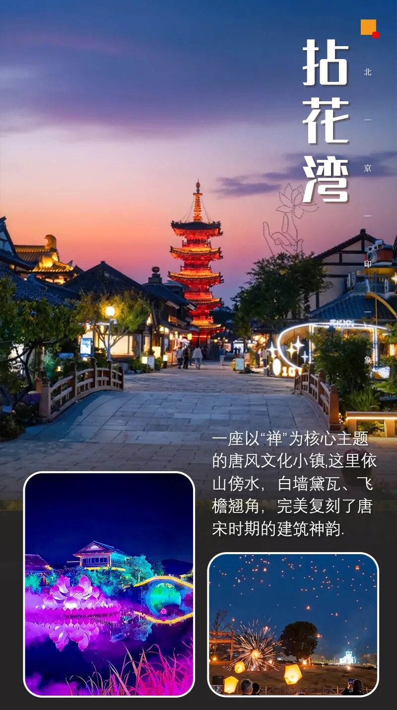- 拈花湾(禅意小镇·网红夜景):唐风禅意小镇,“禅行”夜间光影秀,一步一景,江南美学天花板 。