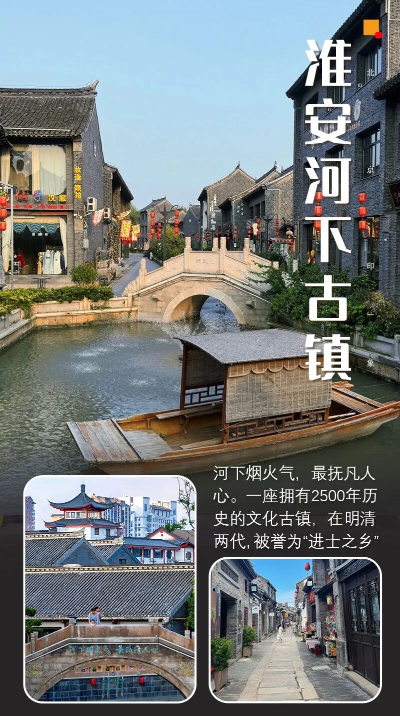 淮安河下古镇位于江苏省淮安市淮安区淮城镇,是一座拥有逾2500年历史的运河文化名镇,被誉为"中国进士之乡"。明清漕运重镇,“小扬州”,吴承恩故居、梁红玉祠、沈坤状元府等。67名进士诞生地 古镇沿里运河而建,主街全长约2公里,遍布明清风格青砖黛瓦建筑,石板路蜿蜒曲折,保留着吴承恩故居、沈坤状元府、古文楼等历史遗迹。这里曾走出数十名进士,人文底蕴深厚。游客可漫步老街品尝淮扬茶馓、钦工肉圆、文楼蟹黄汤包等地道小吃,参观千年古镇碑坊与运河码头,感受古代漕运繁华。门票:古镇免费(古镇有部分小景点单独收费) 。