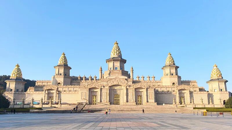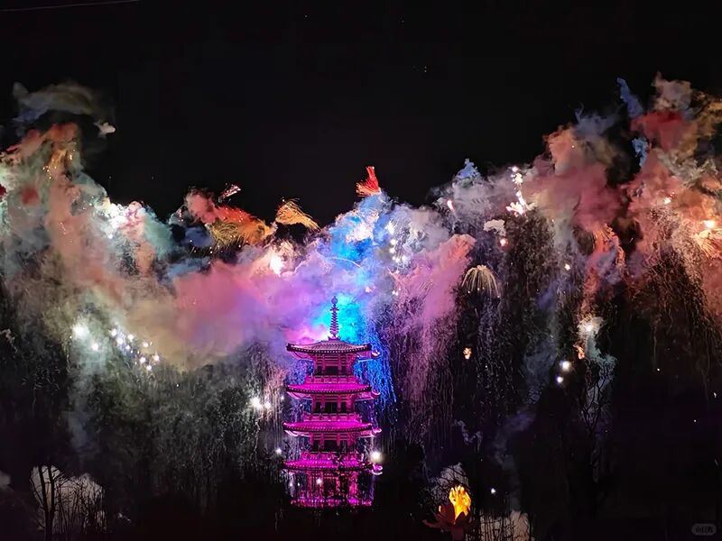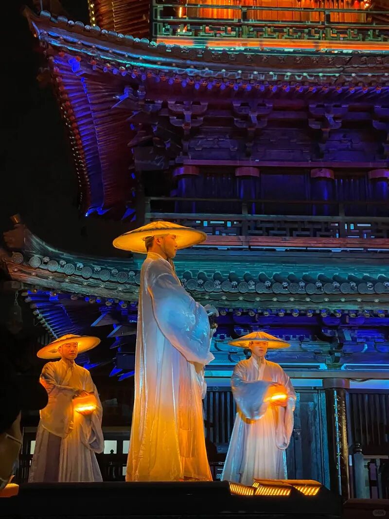 2. 夜景必看:19:30《禅行》演出,拈花塔亮塔、禅音喷泉、花开五叶光影秀。