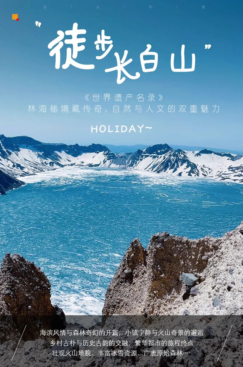 - 今天全天游览长白山北坡:北坡旅游开发较早,设施完善,景点较多,是大部分游客的首选。