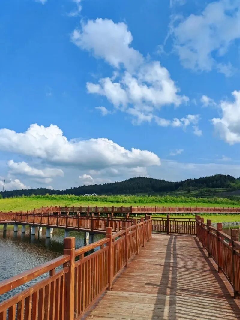 - 早餐后继续出发,下午到达二道白河镇。二道白河镇地处长白山脚下,素有"长白山第一镇"之美称。镇上有河水潺潺,穿城而过。大家可以游览美人松空中廊桥公园、中华秋沙鸭公园等景点,晚上还可以前往云顶集市品尝美食。