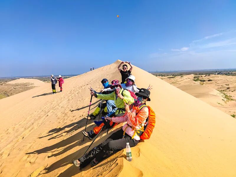 - 早上继续出发,前往中国第七大沙漠库布齐沙漠徒步。领队开始会给大家讲解沙漠徒步注意事项,到达沙漠边缘,稍适休整,之后开始第一天的沙漠穿越,今天要经过很多种地貌,沙漠行走注意补充营养、水分。在沙山中行走要求队员有更好毅力与耐力,跟紧领队的步伐。途中需翻越几座比较高沙山,中途在沙漠中的绿洲边休息、路餐,全程徒步约12公里,爬升约150米(如体力不好,也可以前往附近沙漠地质公园游览骑骆驼、玩沙地摩托等)(注:每人需准备2-3升水,午餐1份)